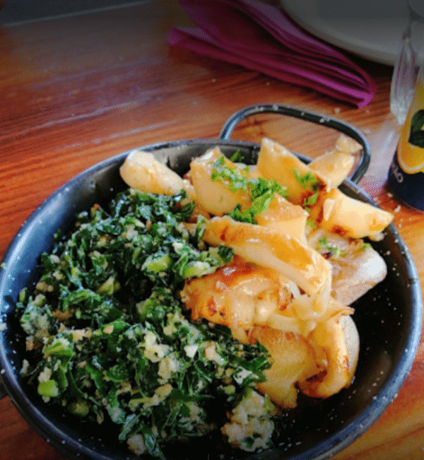 • maranho à Moda da Adega e salada de almeirão;